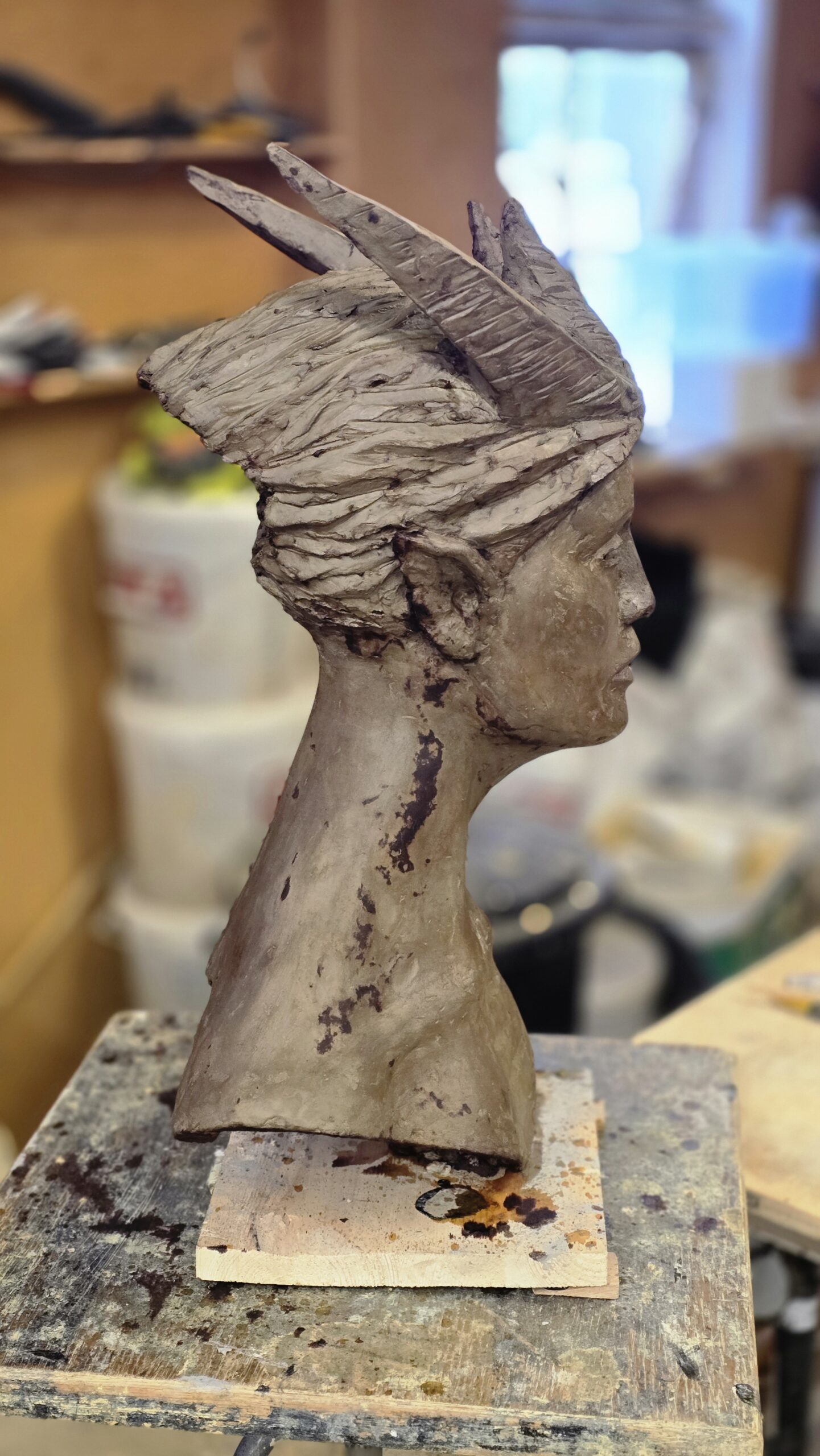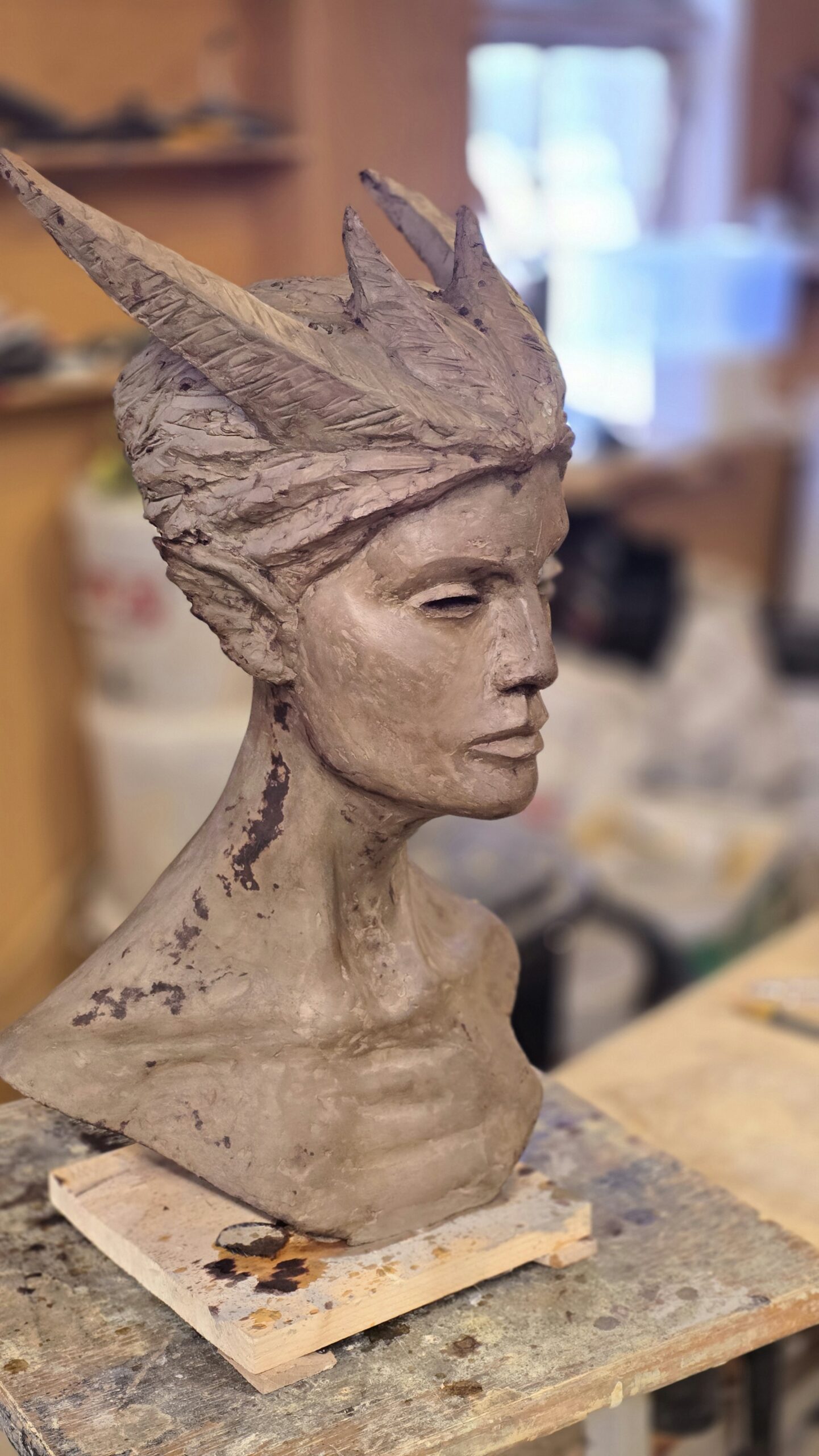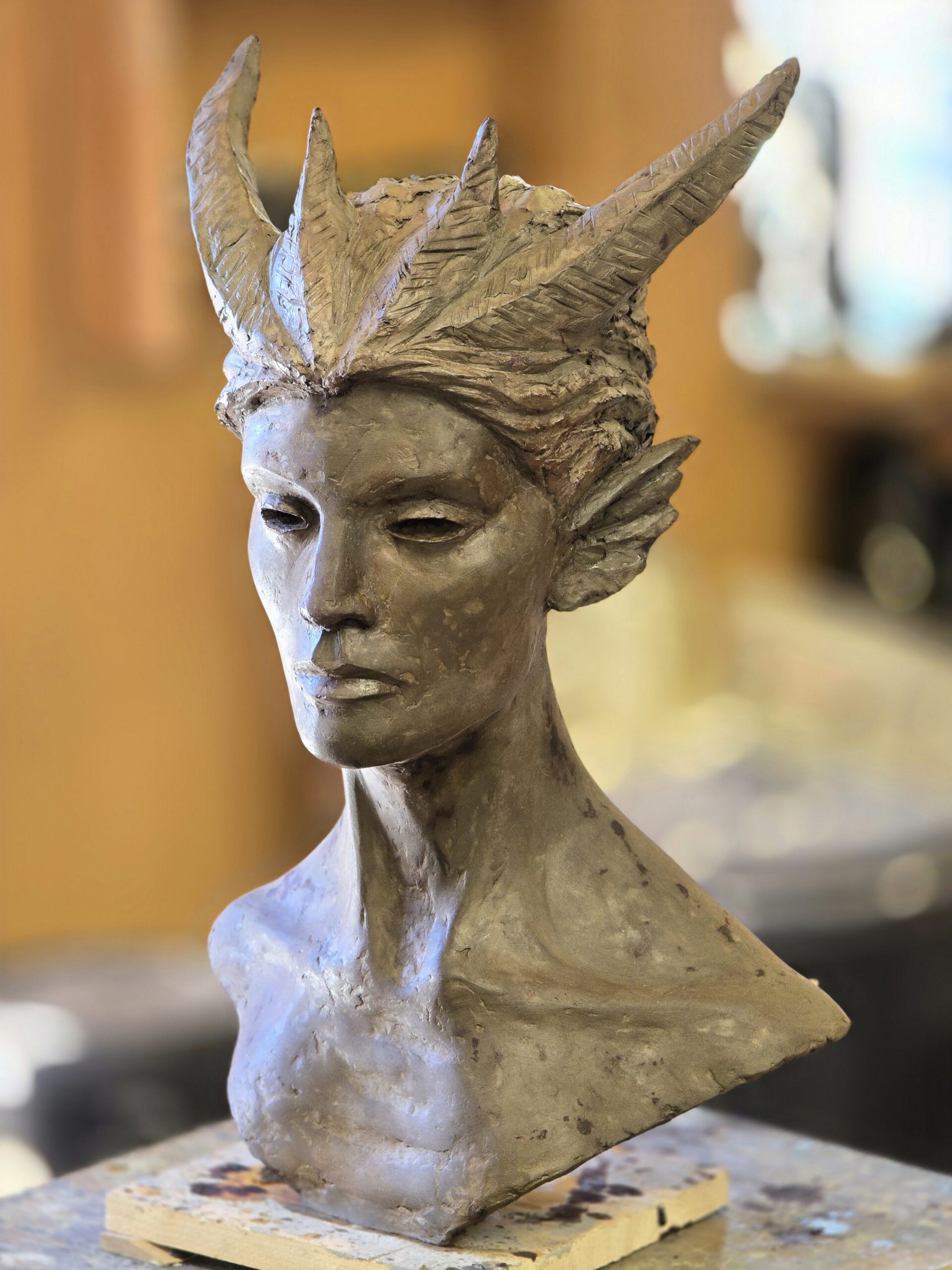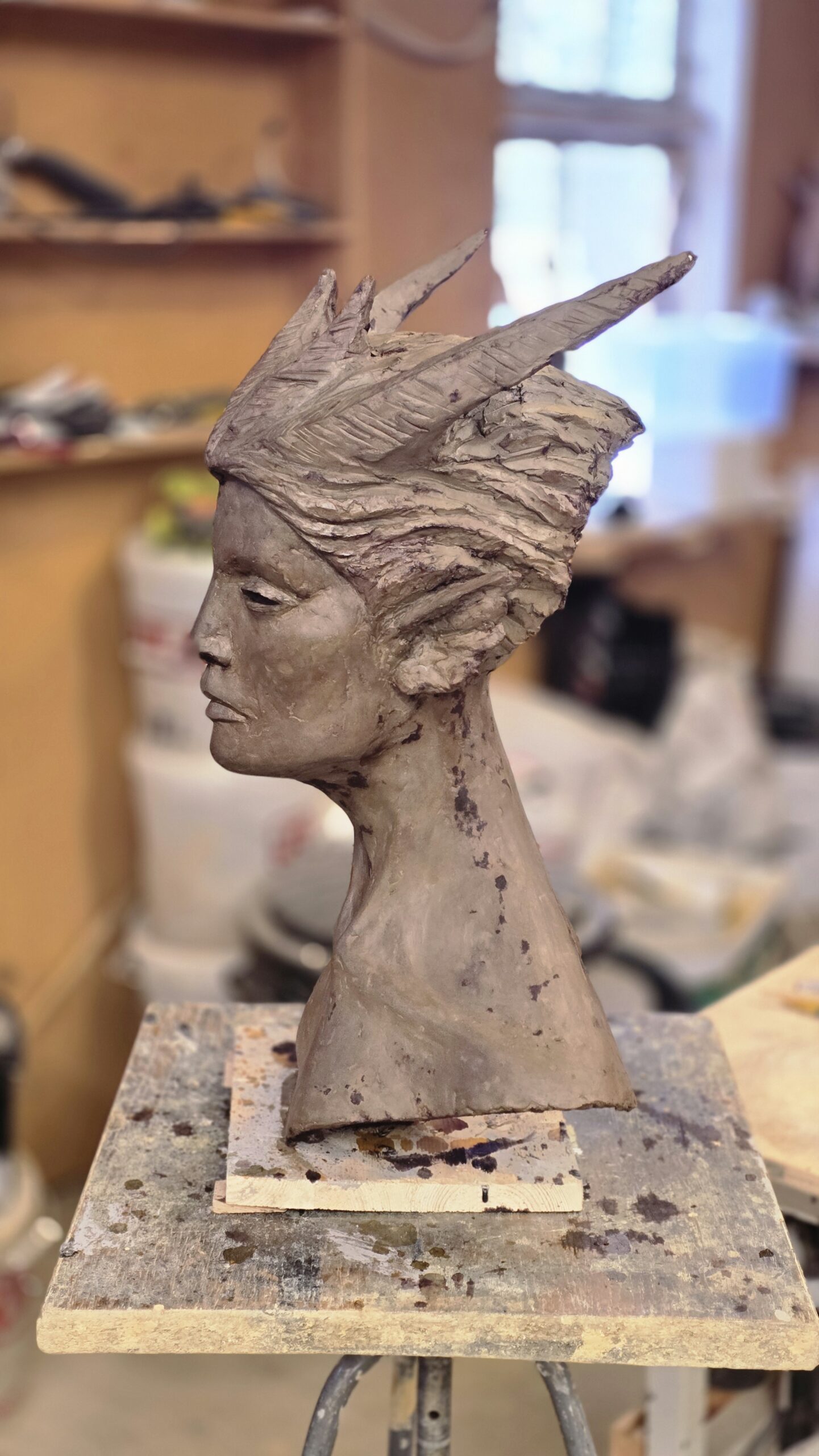 Skulpturen Skogsrå är skulpterad i cellulosalera som lufttorkar. Den är ca 60 cm hög. Skulpterad vintern 2025-2026.