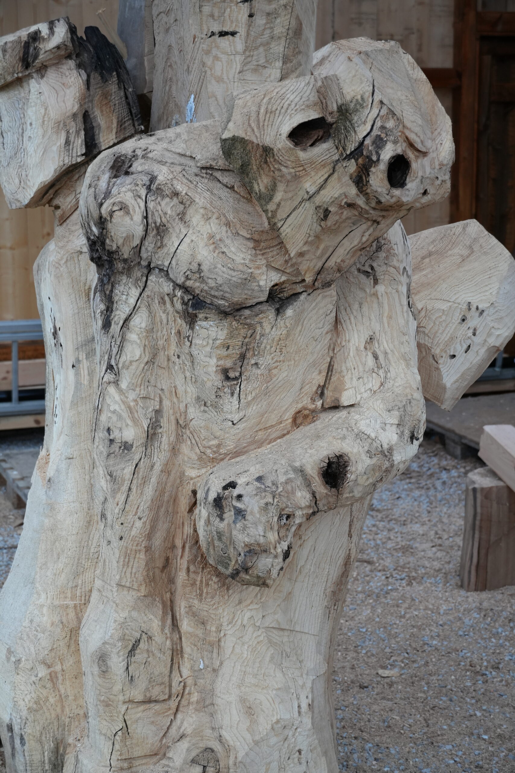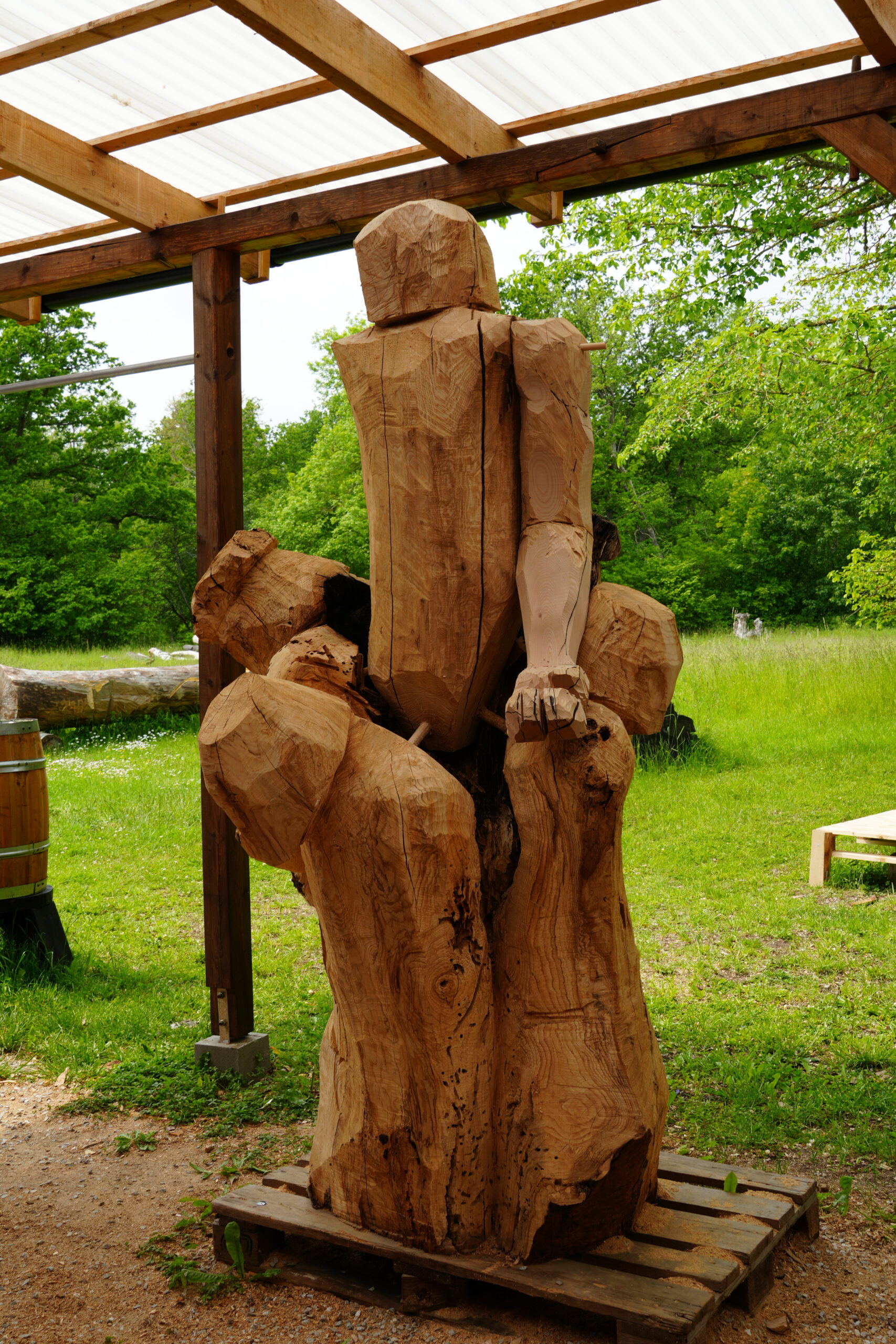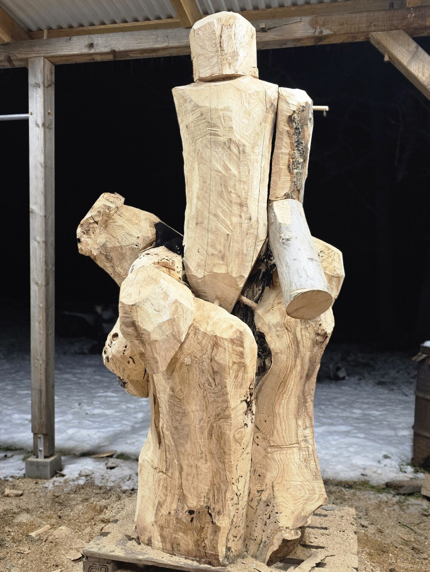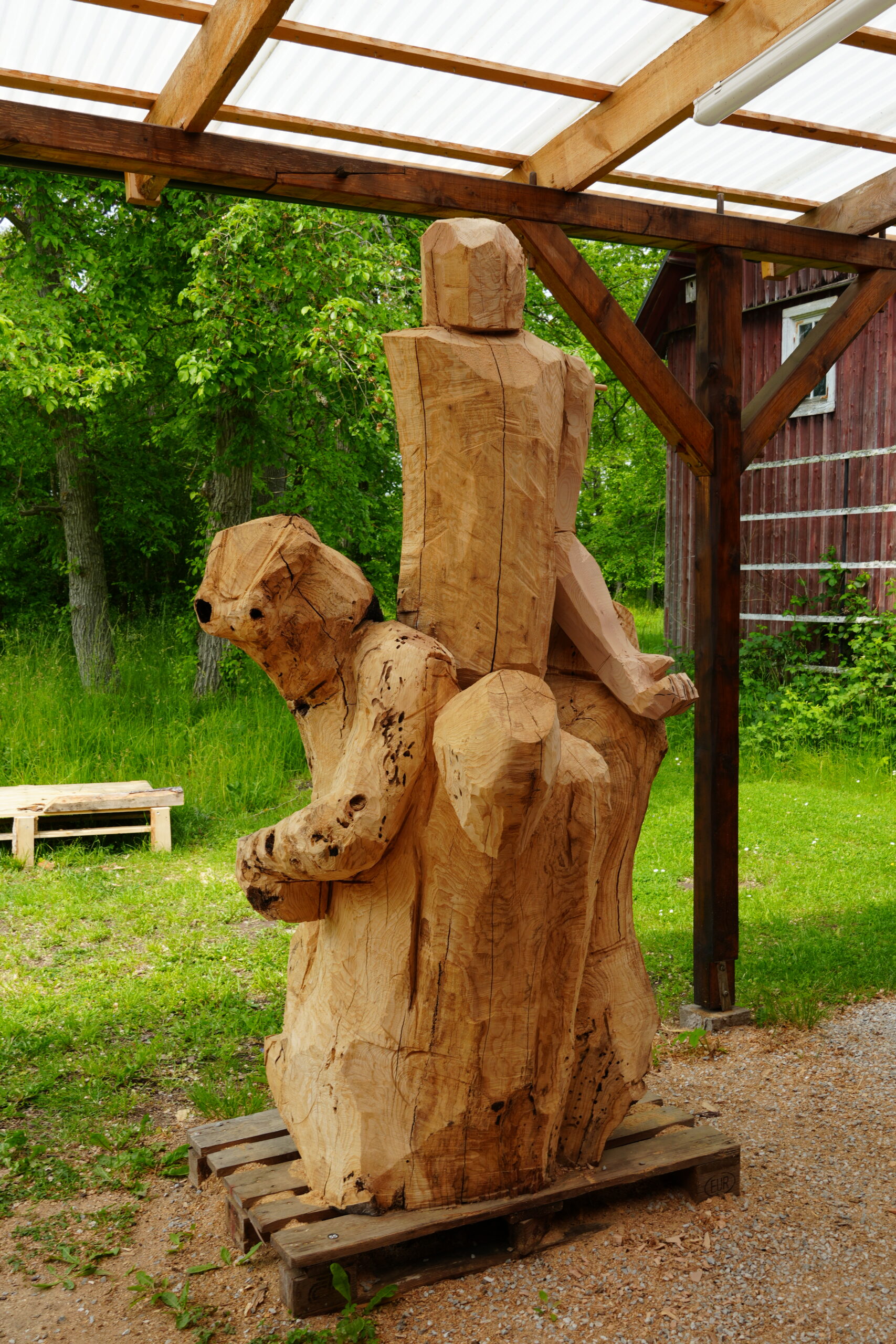 Skulpturen föreställer fyra borgare som böjer sig för Valdemar Atterdag som står stark i mitten. Skulpturen huggs i lokal Ask från Ekeby på Gotland. Basen med de fyra borgarna är i ett stycke och Valdemar är placerad mitt i den stora stocken.
