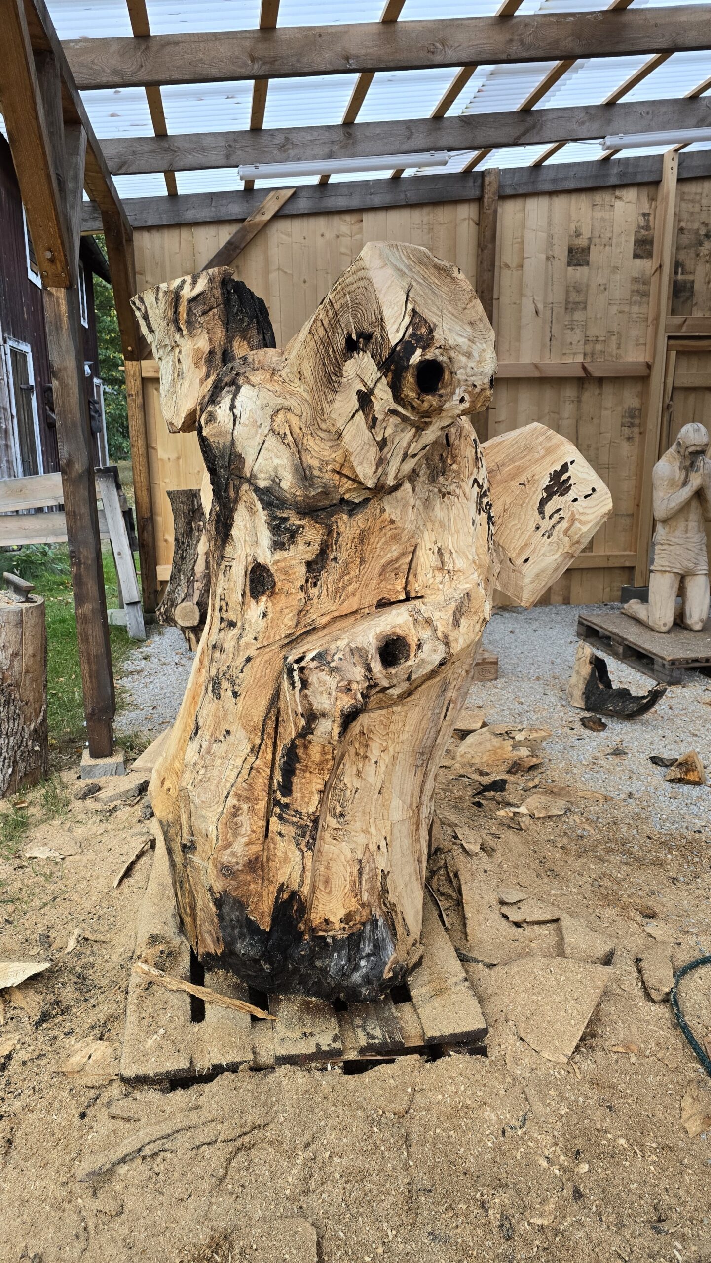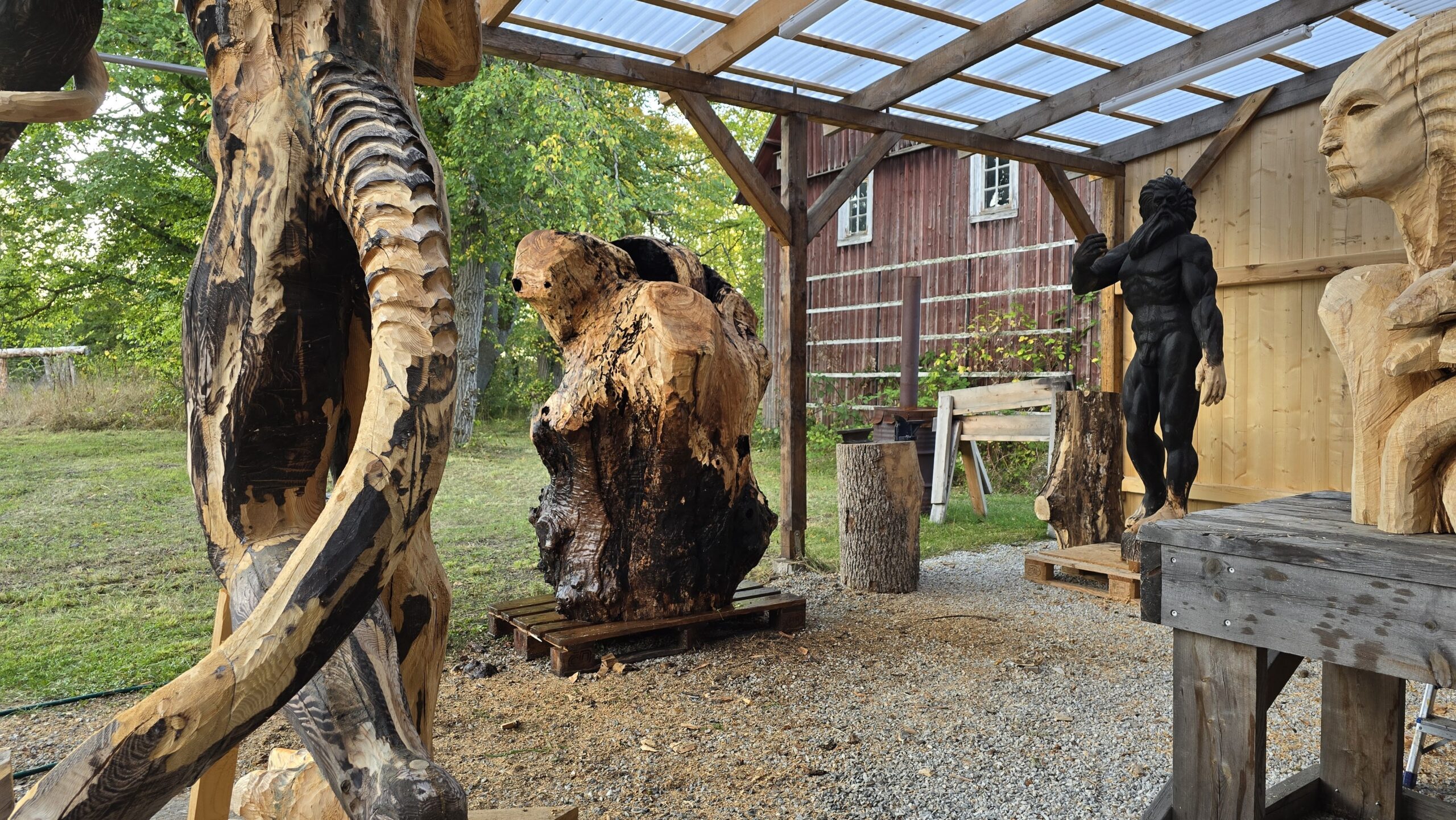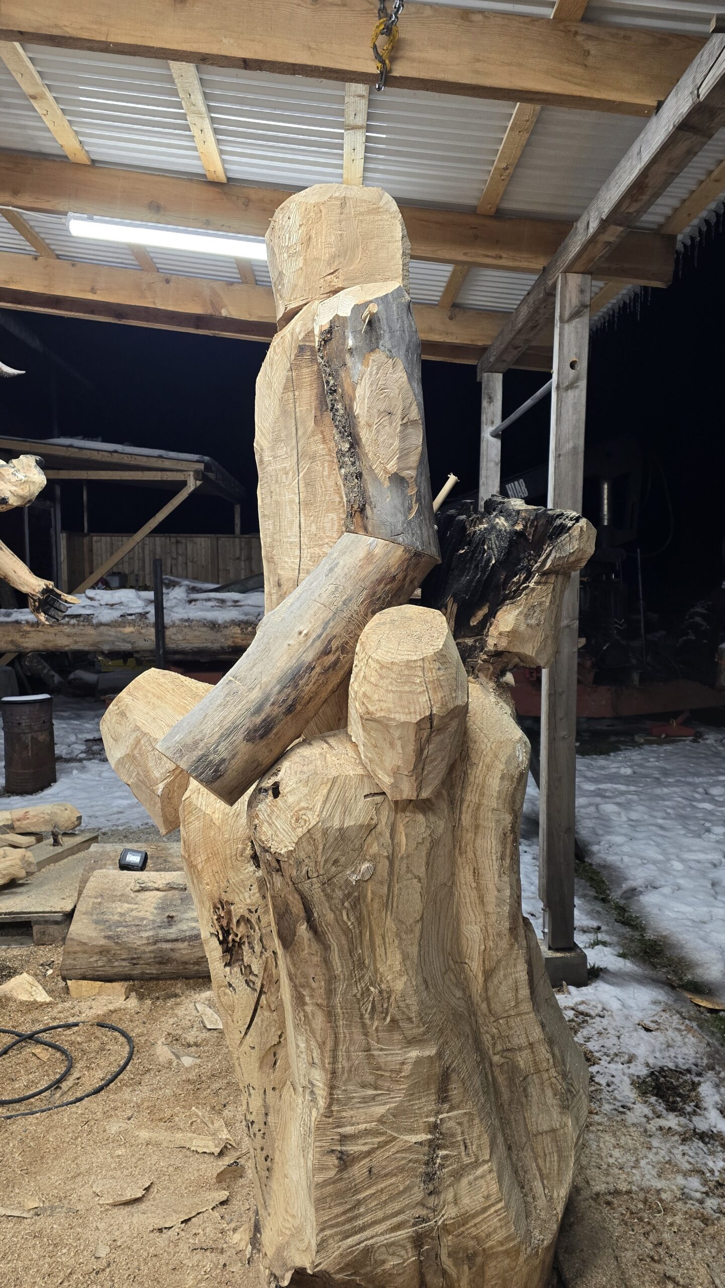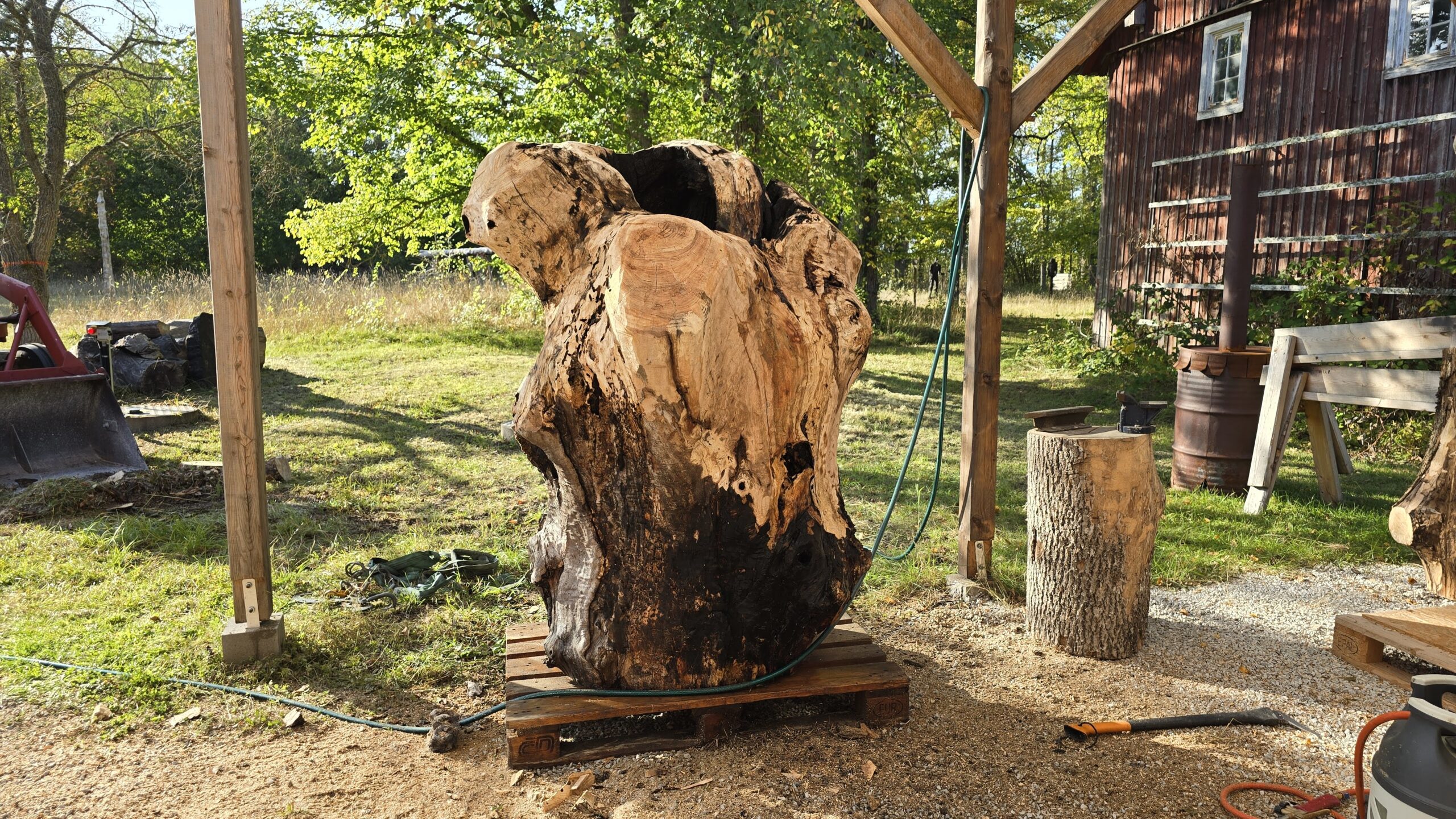 Skulpturen föreställer fyra borgare som böjer sig för Valdemar Atterdag som står stark i mitten. Skulpturen huggs i lokal Ask från Ekeby på Gotland. Basen med de fyra borgarna är i ett stycke och Valdemar är placerad mitt i den stora stocken.